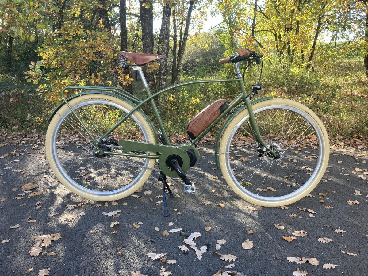 Taille disponible: M. Magnifique vélo rétro de grande qualité, cadre acier pour el confort , le style et la solidité légendaire, vrai selle en cuir de chez Brooks (!) , couvre batterie en cuir… tout en étant au top de la modernité avec son moteur Shimano, sa boite de vitesse Alfine utilisable en boite auto comme en boite manuelle, éclairage Led et freins à disques hydrauliques… .