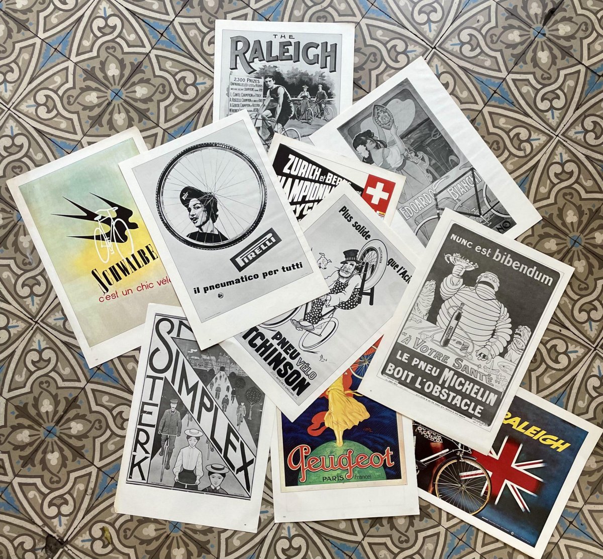 Affiche publicitaire Peugeot, Raleigh, Bianci, Michelin, Pirelli… Dimension 30×40 cm Prix à l’unité