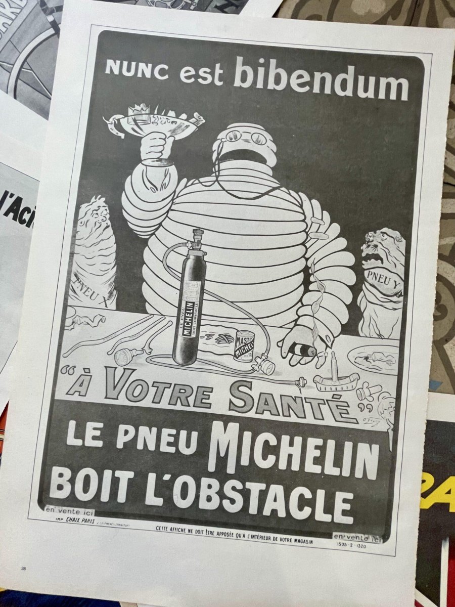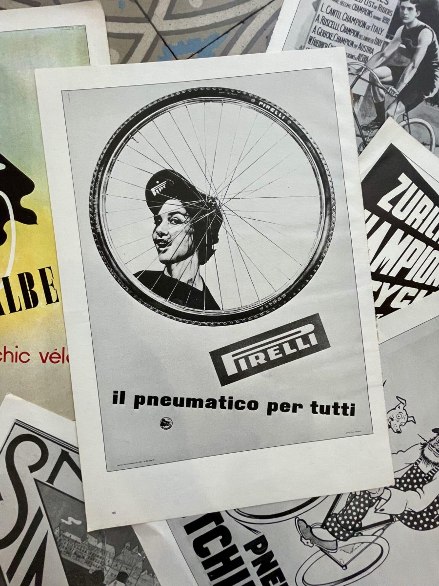 Affiche publicitaire Peugeot, Raleigh, Bianci, Michelin, Pirelli…