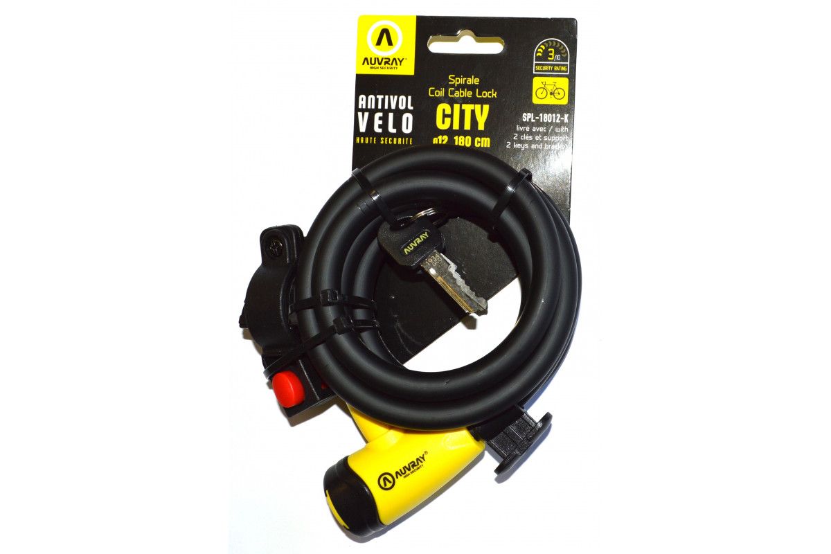 L’antivol spiral Auvray Combi D12 180 cm est un antivol à câble classique de 180 cm. D’un diamètre de Ø12 mm, il est idéal pour être transporté facilement dans un sac à dos ou autour du cadre du vélo. Il est livré avec deux clés fraisées.