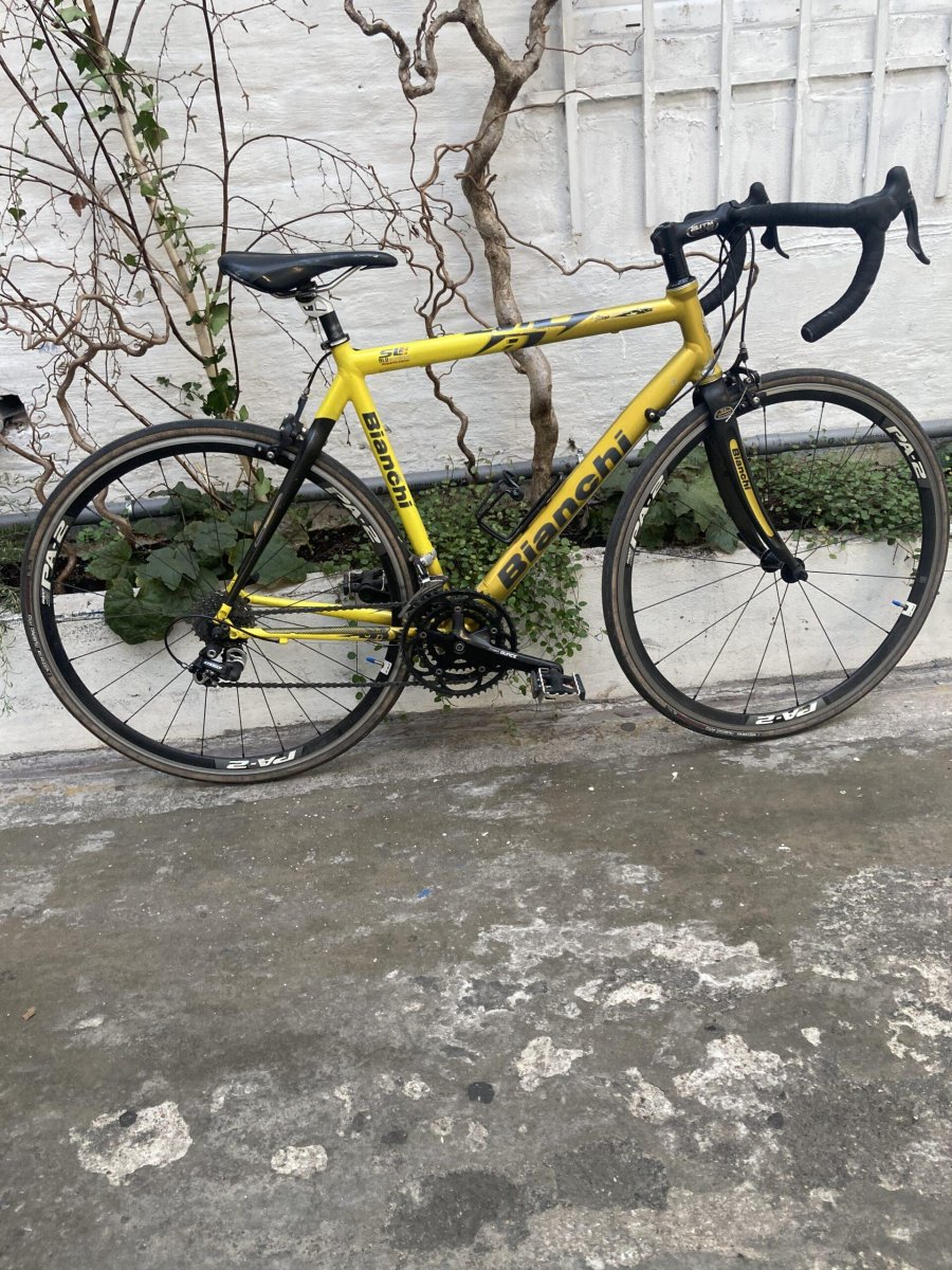 Magnifique Bianchi Taille 52cm pour une personne Ă partir d’1m65* Manettes de vitesse au guidon Transmission Campagnolo 2×9 vitesses RĂ©visĂ© et prĂŞt Ă rouler