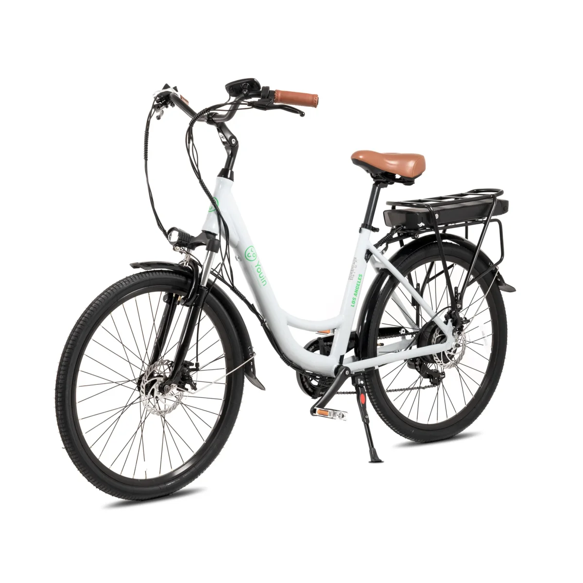 La bicicleta eléctrica Youin You-Ride Los Angeles es la opción ideal para quienes buscan una e-bike de paseo con estilo y funcionalidad. Equipada con un motor trasero de 250W y una batería de litio extraíble de 36V/10Ah, ofrece una autonomía de hasta 40 km, perfecta para desplazamientos urbanos y paseos relajados.