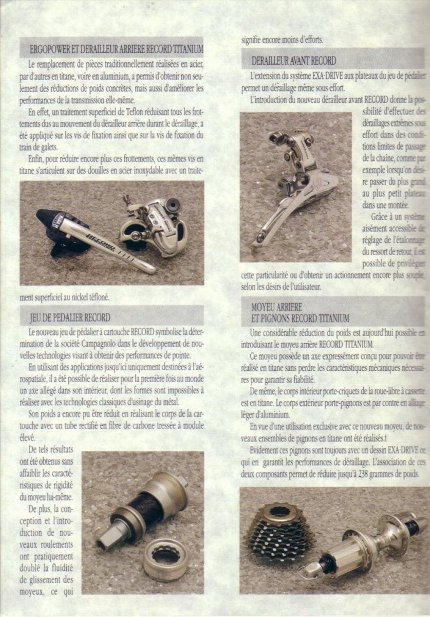 Le nouveau jeu de pédalier à cartouche RECORD symbolise la détermination de la société Campagnolo dans le développement de nouvelles technologies visant à obtenir des performances de pointe