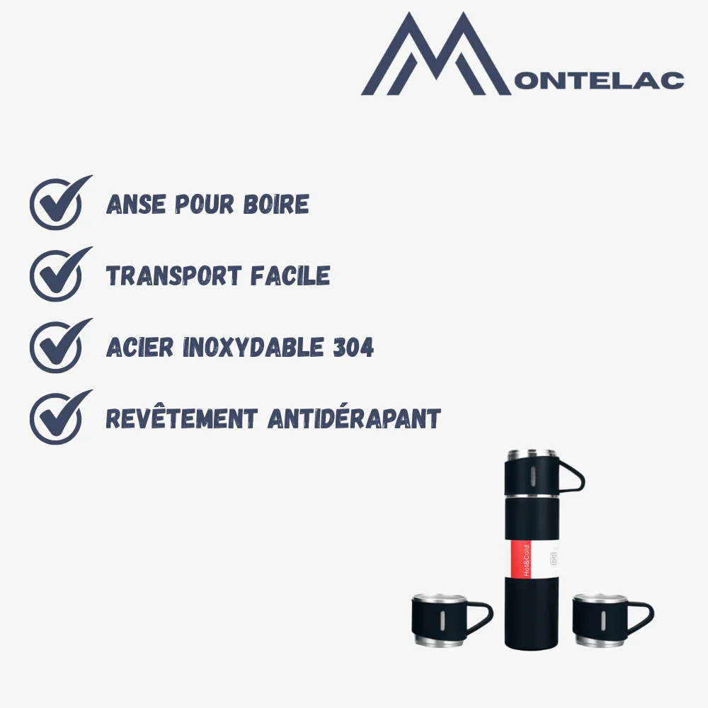 Cette bouteille isotherme en acier inoxydable de 500 ml est conçue pour maintenir vos boissons chaudes ou froides pendant de longues heures. Grâce à sa double paroi isolée sous vide, elle offre une performance fiable lors des randonnées, du camping, des trajets quotidiens ou des activités extérieures. Son système de versement étanche limite les fuites, tandis que les deux tasses incluses rendent le partage pratique en déplacement. Montelac propose un accessoire compact et durable, adapté aux besoins des amateurs de plein air.