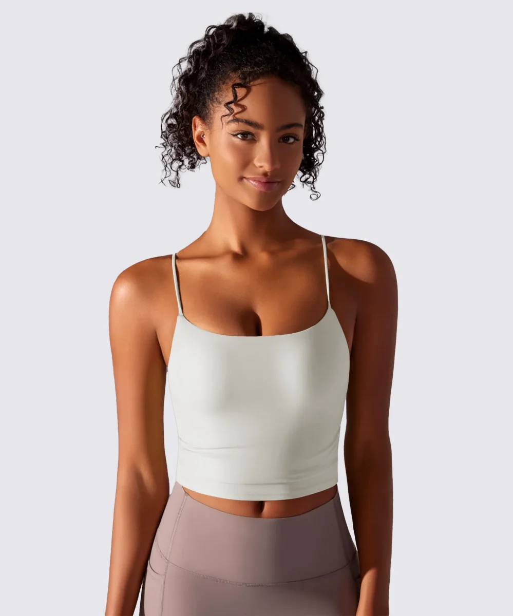Cette brassière de sport blanche combine maintien et confort pour soutenir tous vos mouvements avec élégance. Sa matière respirante et extensible épouse la silhouette, garantissant liberté et légèreté pendant vos séances de yoga, pilates ou fitness.