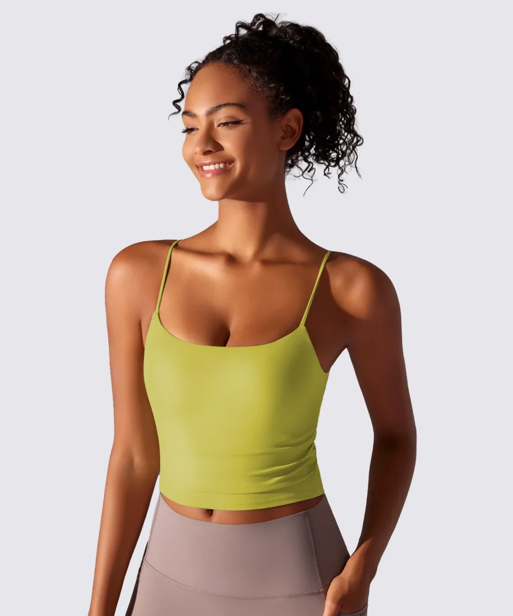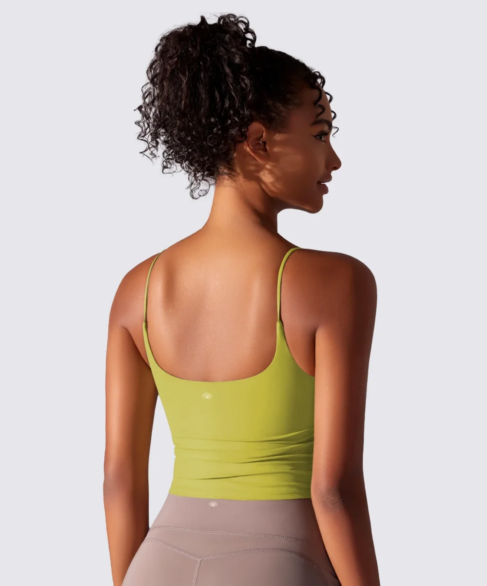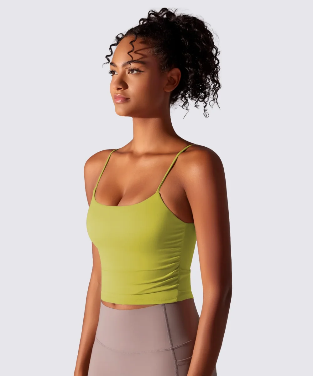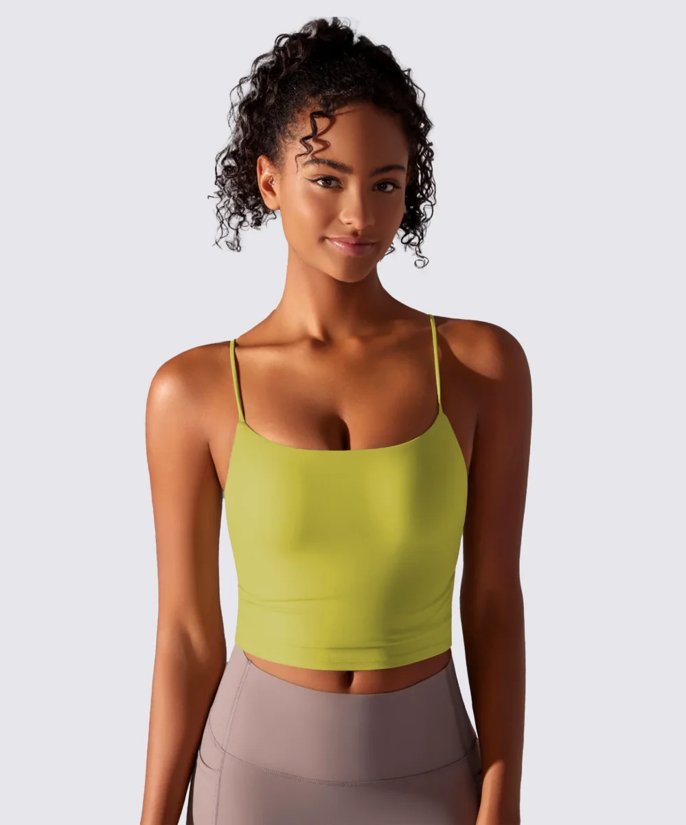 Cette brassière de sport olive allie maintien, confort et style naturel. Sa matière extensible et respirante épouse parfaitement les formes pour offrir une liberté totale de mouvement. Idéale pour le yoga, le pilates et les entraînements quotidiens, elle apporte une touche apaisante et élégante à votre tenue sportive.