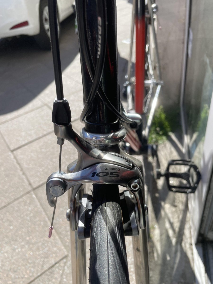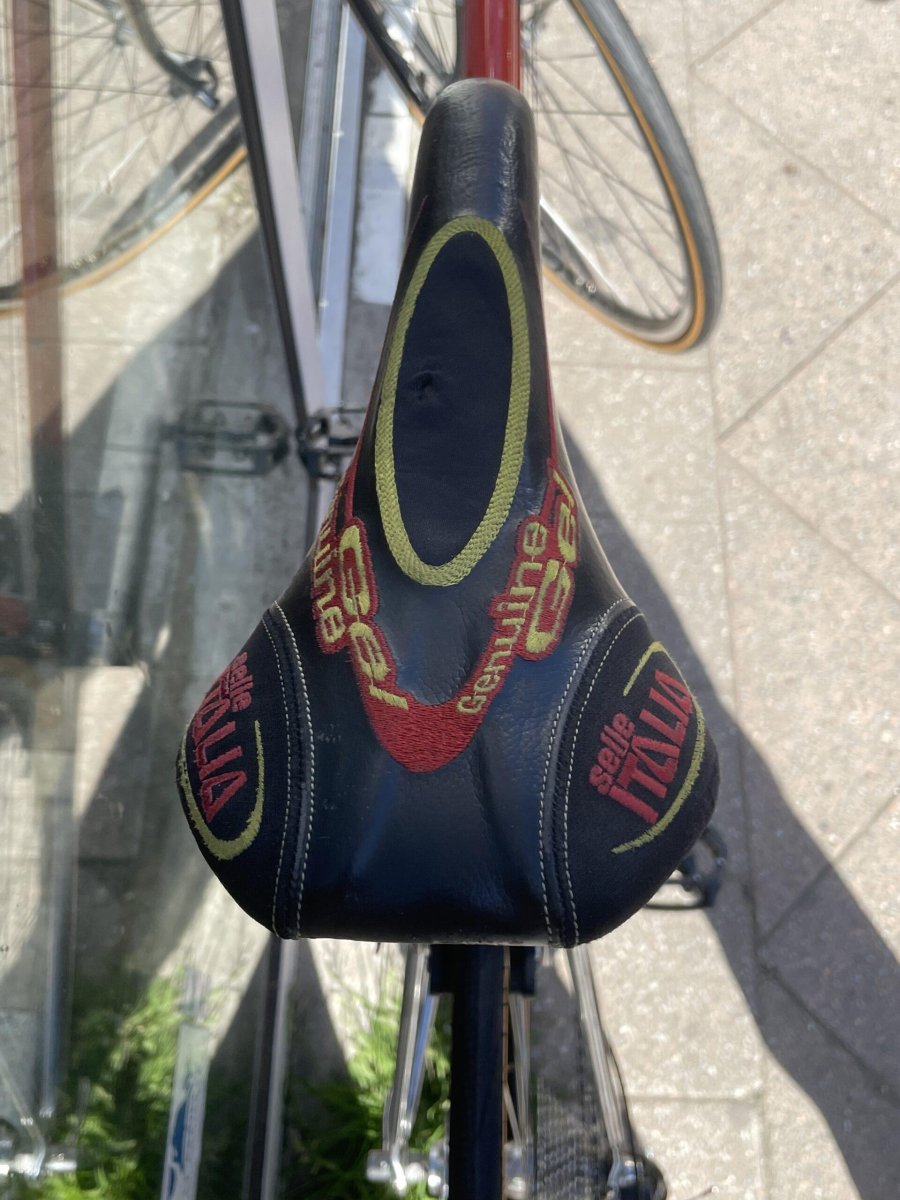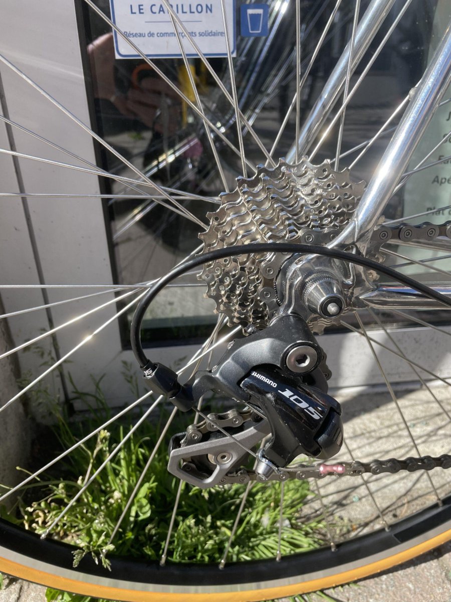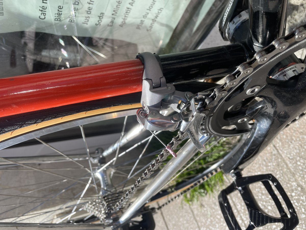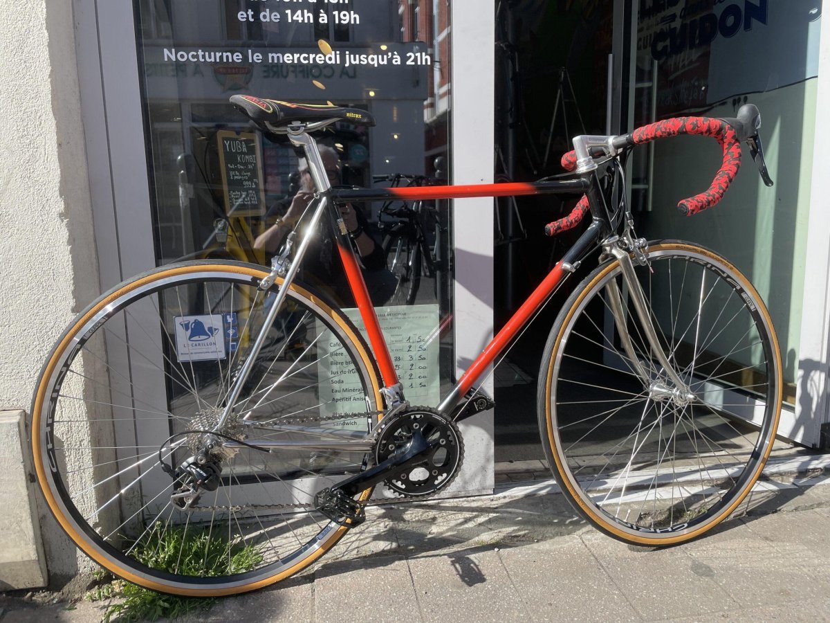 Montage maison à partir d’un cadre taille 54 en Colombus CrMo Groupe complet en Shimano 105 NOS : Pédalier Double Shimano 105 Cassette 10v Shifters Shimano 105 Dérailleurs Av et AR Shimano 105 Cintre TTT Forma ST Roues Neuves Pneus Neufs Lugano2 Selle Italia Vintage Vélo rouge qui va vite Poids 10, 57 Kg “Un […]