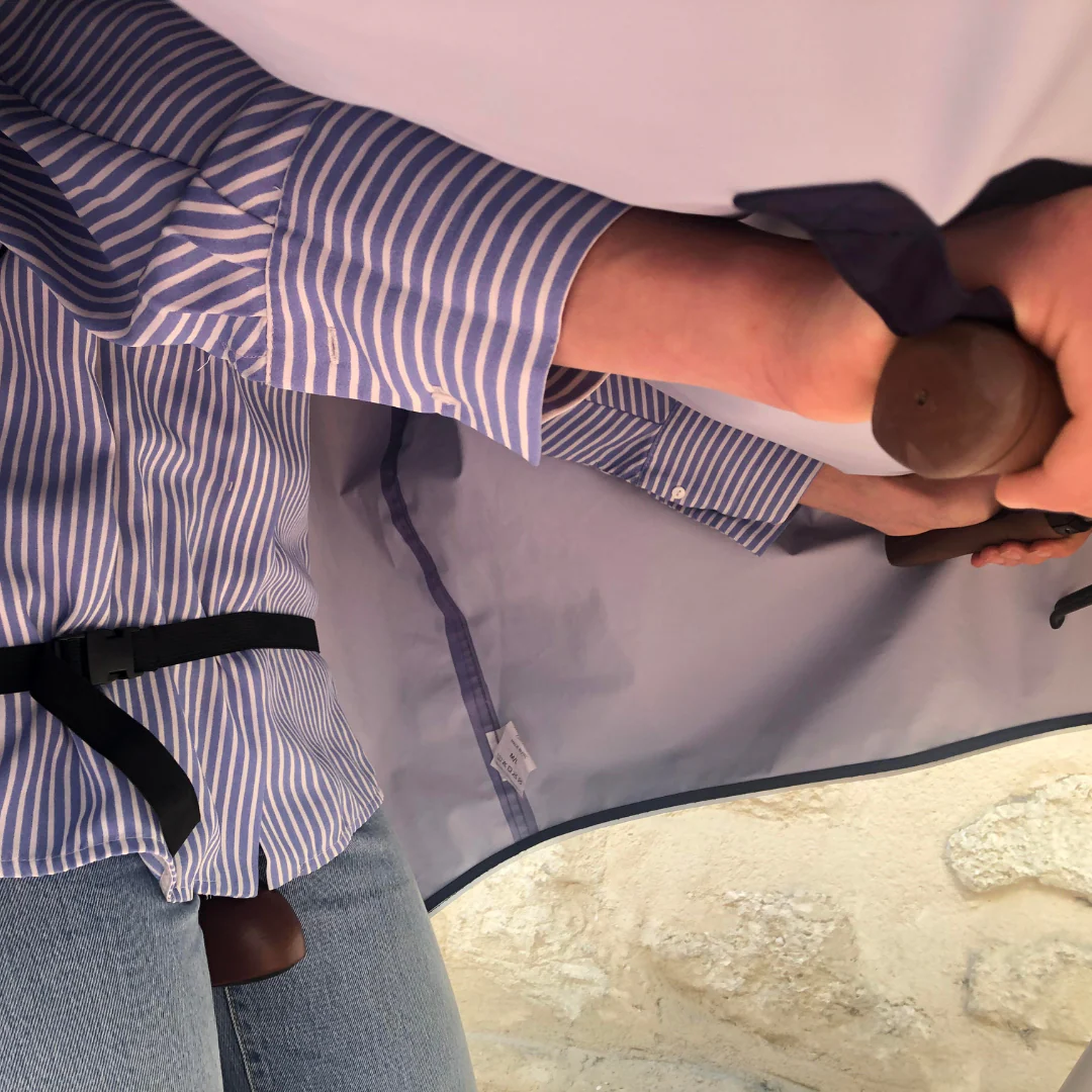 - Afin d’épouser parfaitement le vélo, les capes de pluie sont équipées de deux bandes de fixation au guidon et d’une sangle de maintien dorsale.