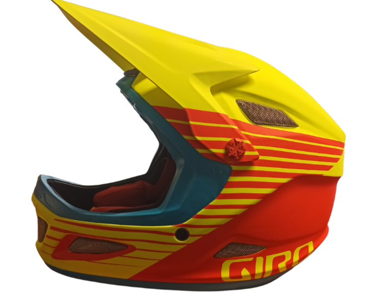 Taille: S 54-56 Casque Giro Cipher Jaune / Rouge / Bleu. Casque très léger pour freeride, descente et enduro, avec carcasse en fibre de verre, intérieur avec rembourrage à plusieurs couches X-Static et entrées d’air à la partie frontale pour une réfrigération et un confort parfaits. Intègre visière P.O.V. amovible sans outils, mentonnière en Vinyl Nitrile et haut-parleurs TuneUps avec commande O-Snap.