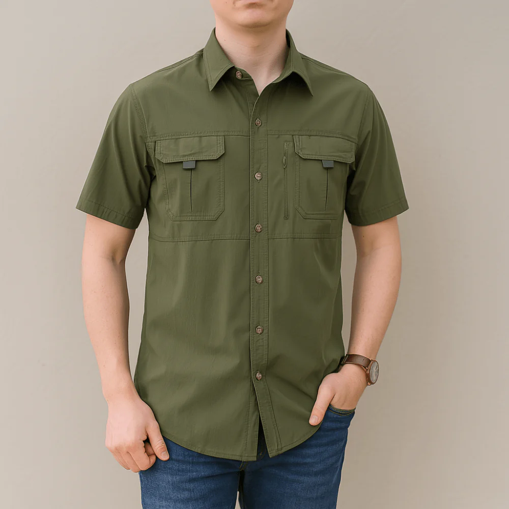 Cette chemise à manches courtes pour homme est conçue pour offrir un confort optimal lors des activités de plein air par temps chaud. Légère et respirante, elle facilite l’évacuation de l’humidité tout en assurant une bonne liberté de mouvement. Le modèle Montelac comprend plusieurs poches pratiques, idéales pour garder vos essentiels à portée de main durant vos randonnées, sorties nature ou journées de pêche.