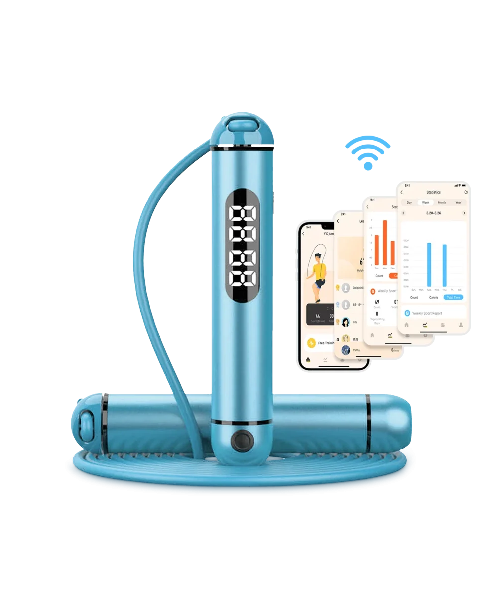 Légère et lumineuse, cette corde à sauter connectée bleu ciel vous accompagne dans un cardio fluide et inspiré. Avec option sans fil, affichage LED et app mobile gratuite, elle vous aide à rythmer vos séances avec calme et efficacité, entre ciel ouvert et studio intérieur.