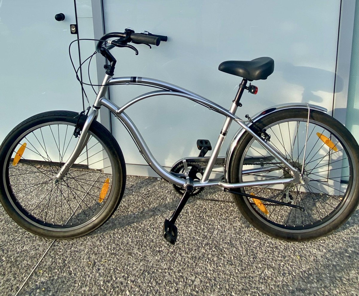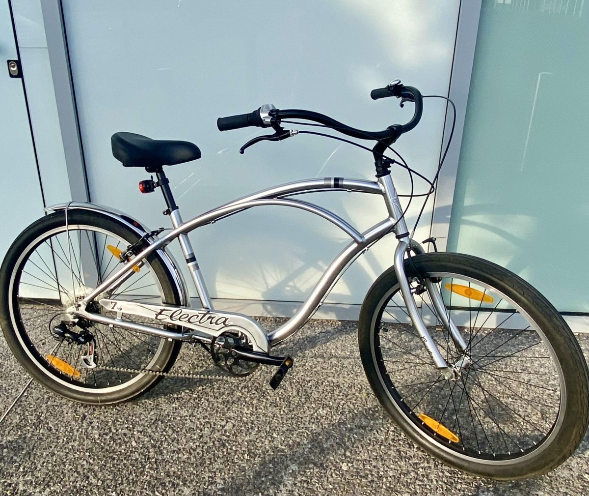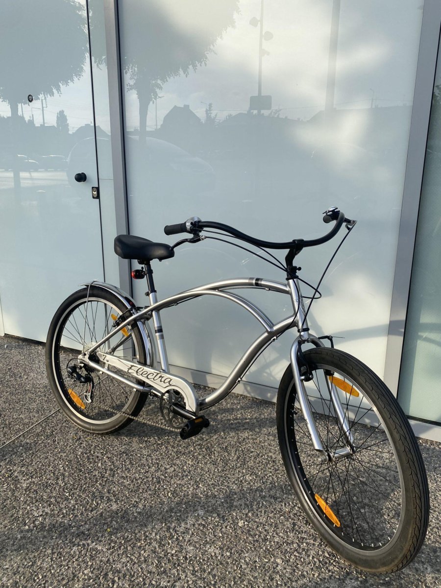 Cruiser Electra 7 en aluminium brossé, parfait état, 7 vitesses via poignée tournante, pédalier 3 pièces, freins V brake , hyper confortable et prêt pour vos prochaines balades