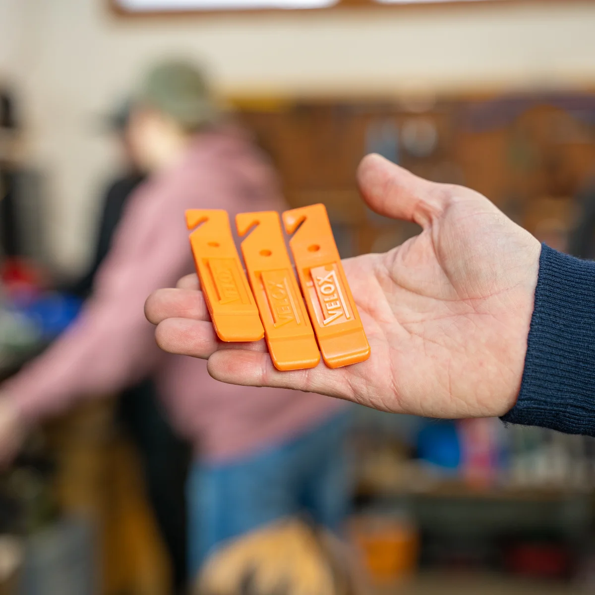 Les démonte-pneus Velox, vendus par lot de 3, sont des outils indispensables pour faciliter le démontage de vos pneus, que ce soit sur un muscle bike ou un vélo à assistance électrique (VAE, E-Bike). Conçus pour être robustes et ergonomiques, ils permettent de démonter efficacement un pneu sans risquer d’endommager la jante ou la chambre à air.