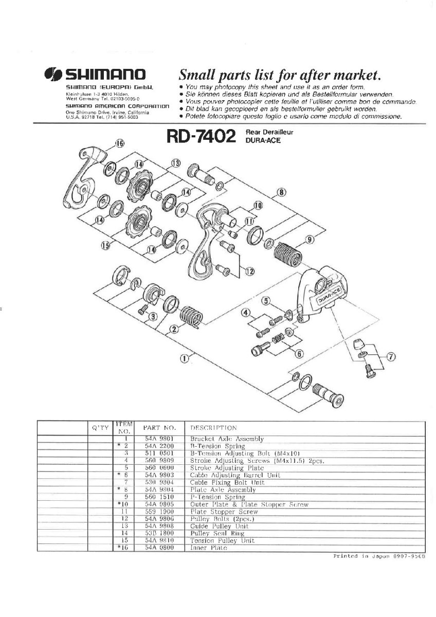 Dérailleur arrière Shimano Dura Ace A 7402 8 V ,en très bon état état esthétique et mécanique présente quelques trace d’usure normale.galets en parfait état