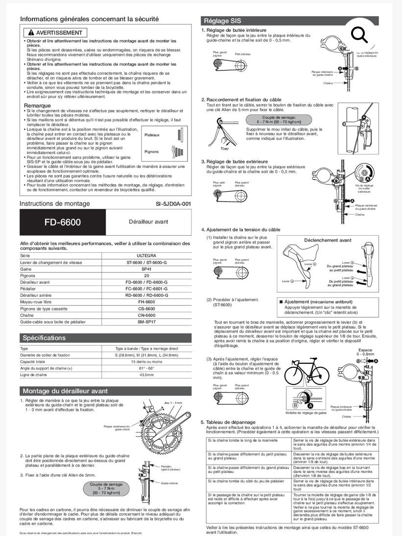 Derailleur avant shimano FD-6600 double plateaux à positionner via collier ( diam 34 mm) ou positionnement à braser très bon état