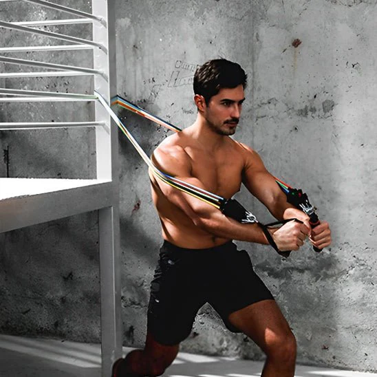 Commencez doucement puis augmentez progressivement l’intensité en combinant plusieurs bandes pour créer jusqu’à 68 Kg de résistance.