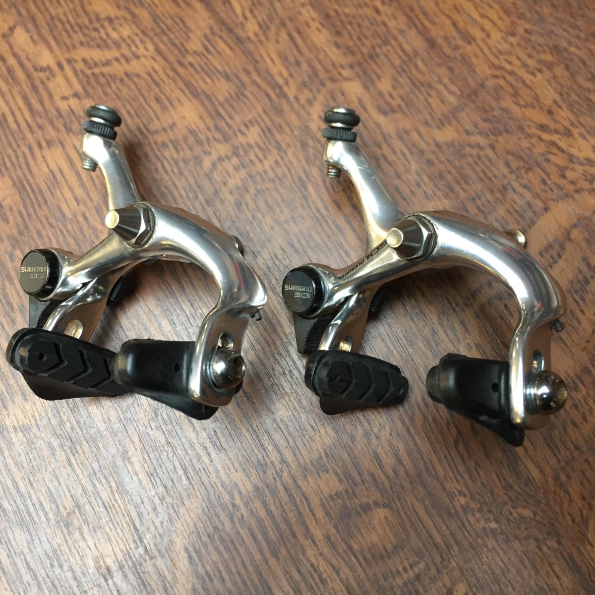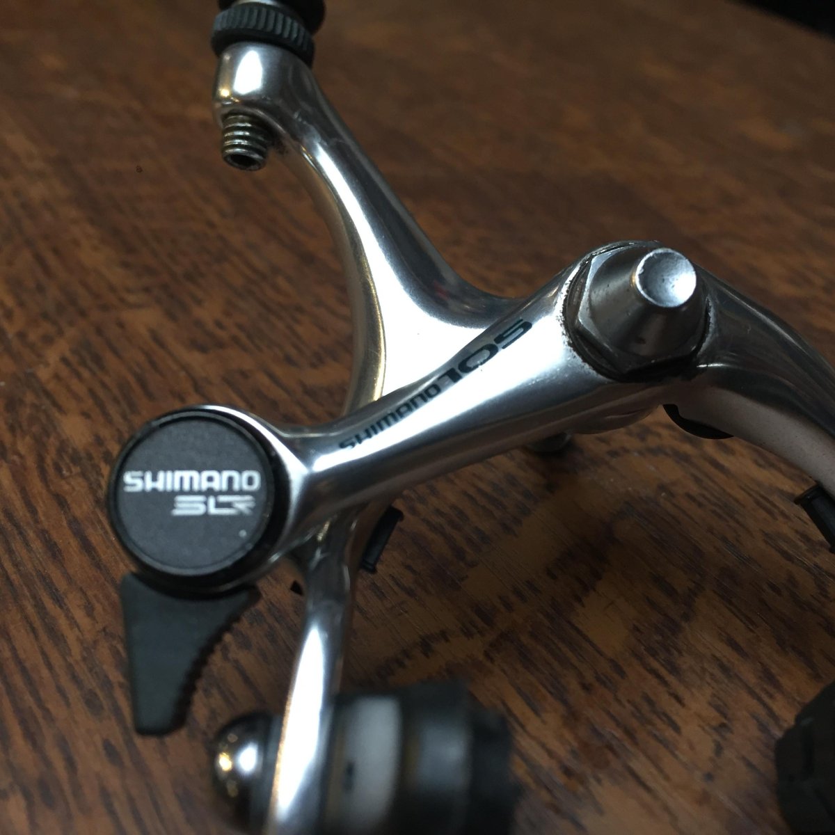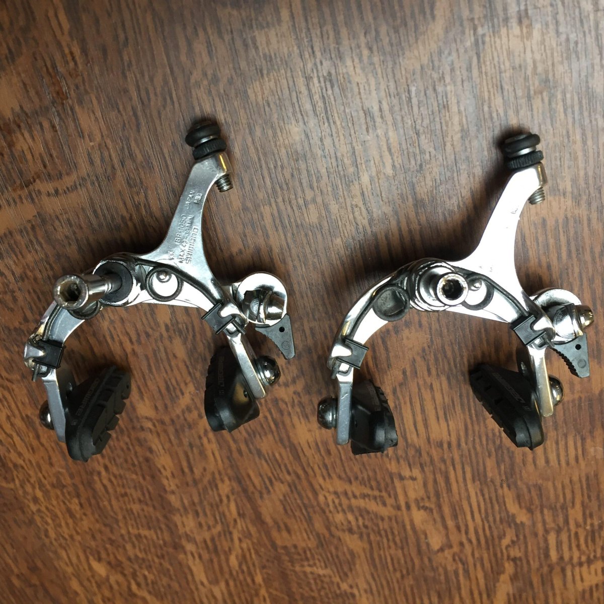 Etrier de frein Shimano 105 ancien, en très bon état hauteur mini 39mm, hauteur maxi 49mm années 1985-1988 détails sur le site de Shimano : https://si.shimano.com/fr/manual/search?model=BR-1050 voir les autres produits de la gamme shimano 105