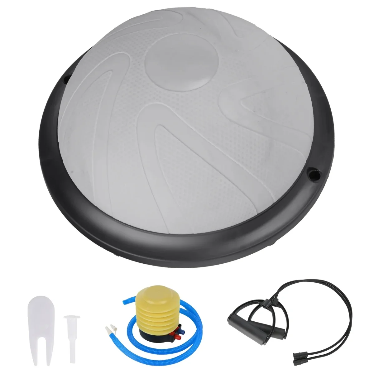 est livré avec : une Balle d’équilibre, une pompe gonflable, une corde de tension, une prise d’air, une extracteur d’air, un manuel d’instructions