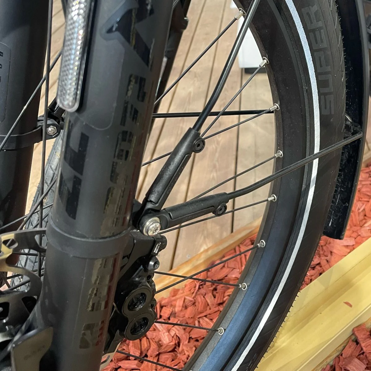 Fixation de tringle de garde-boue avant sks sur partie gauche de la roue Riese & Müller