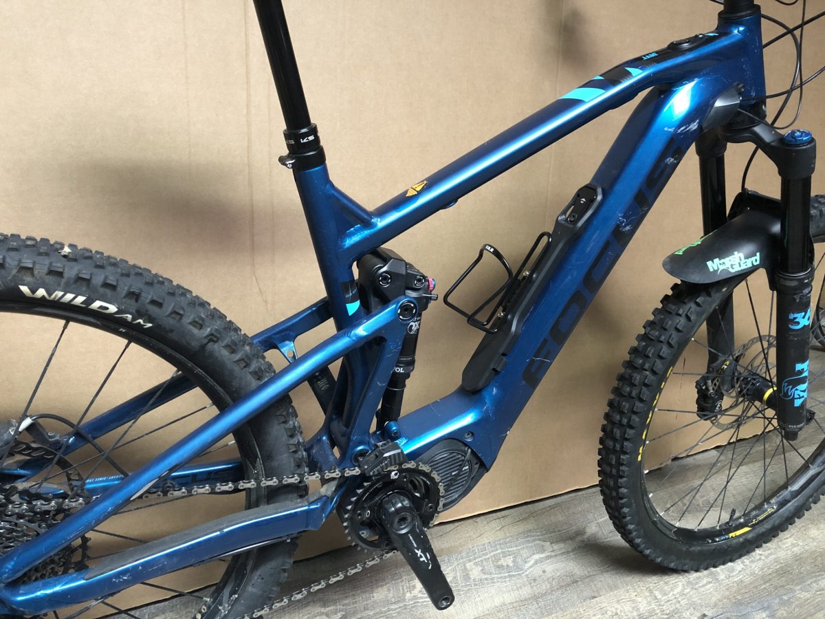 EPUISE. Taille L. . Vendu avec la batterie additionnelle portant la capacité 756 Wh. Vélo révisé par nos soins dans notre atelier (mais vélo très rayé)
