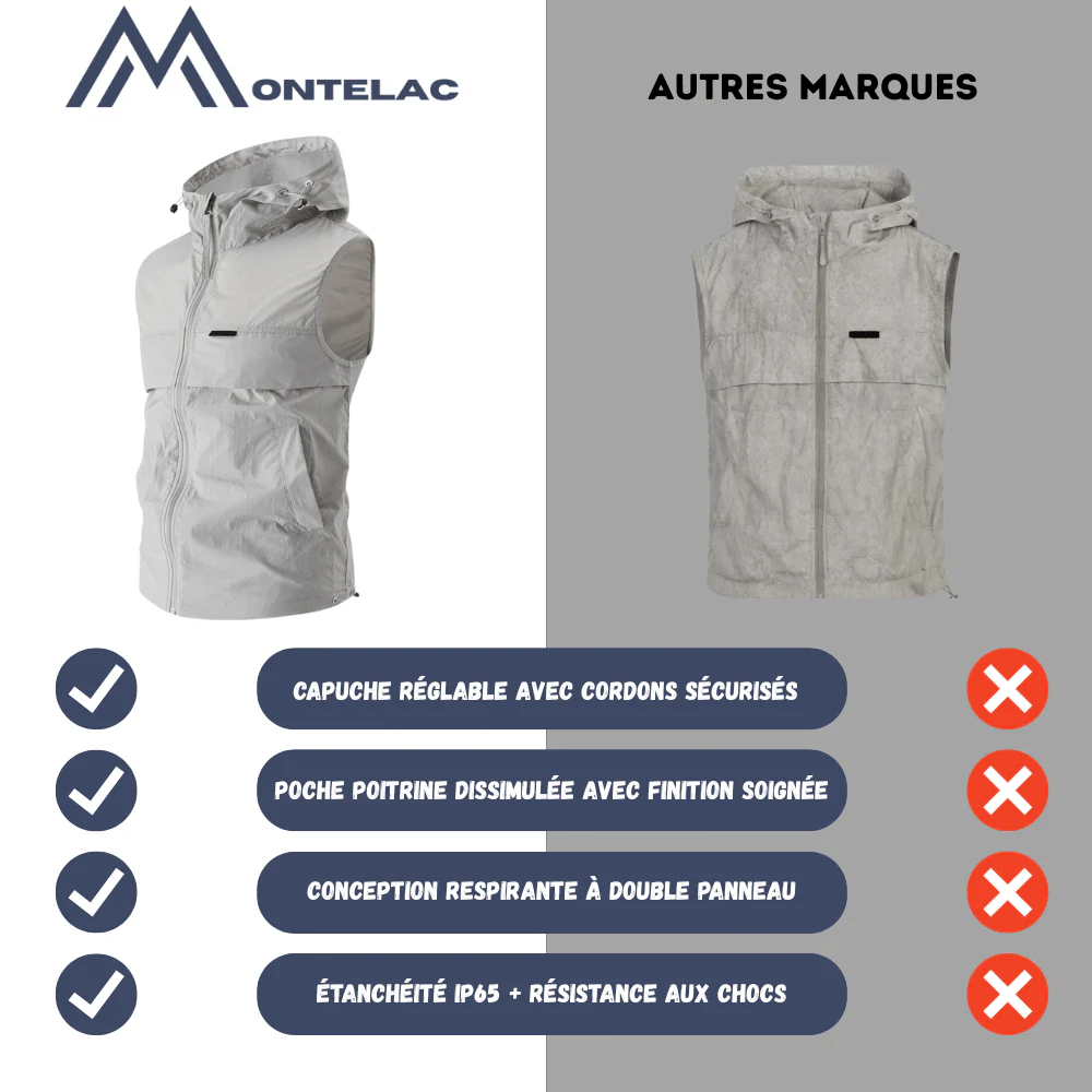 Gilet sans manches léger à capuche et poches | Montelac