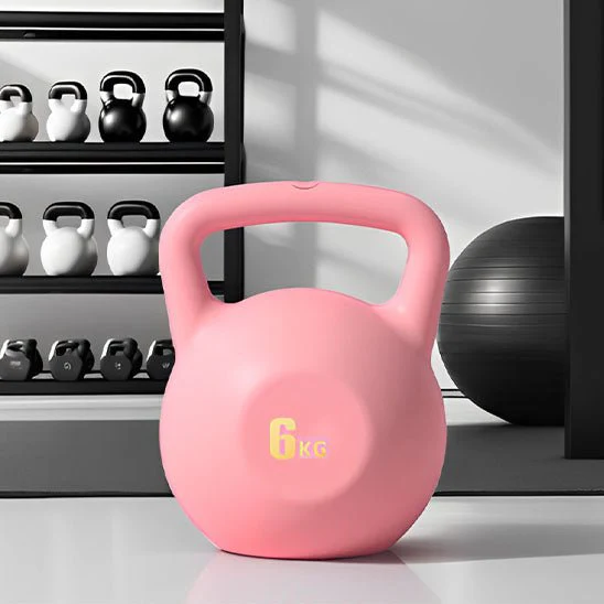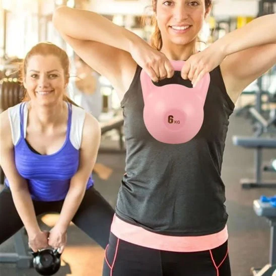Notre kettle bell en matériau PE écologique intègre une technologie de cristaux souples qui absorbe les chocs en cas de chute.