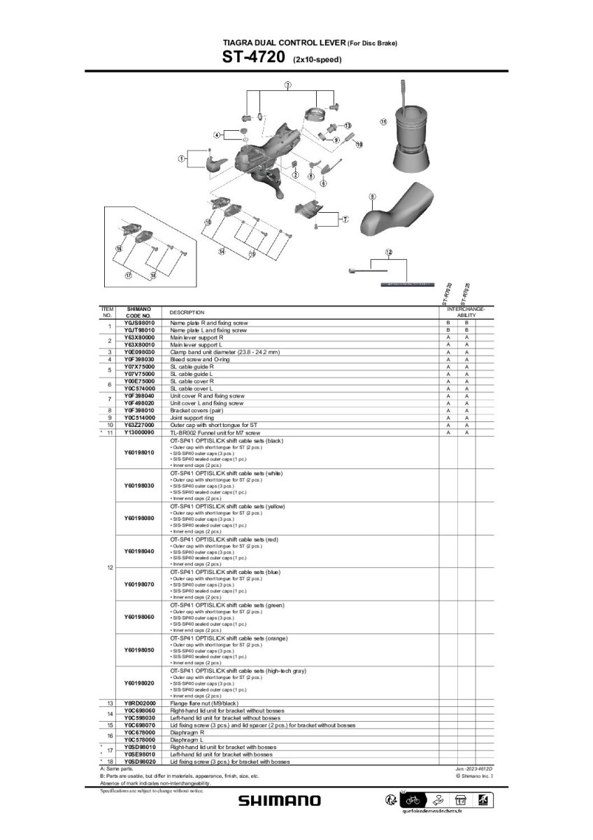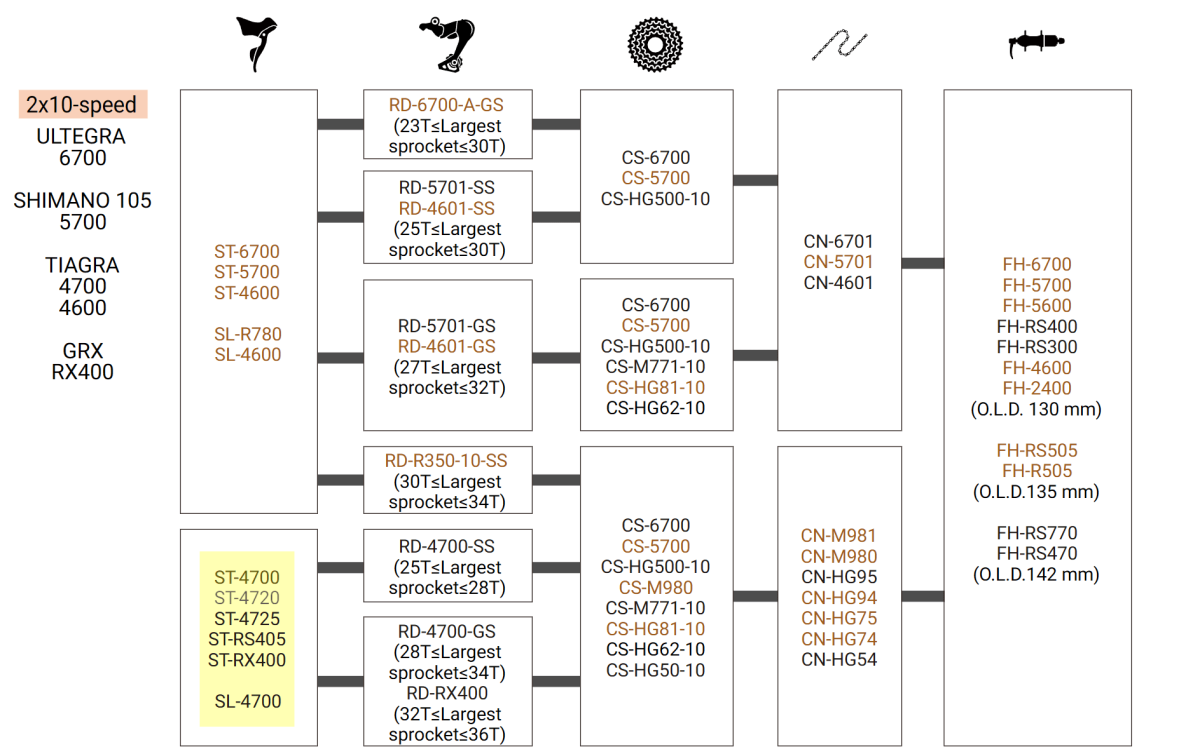 attention, cette manette n’est compatible qu’avec les dérailleurs 10 vitesses RD-4700 et GRX RD-RX400 (cf tableaux compatibilité)