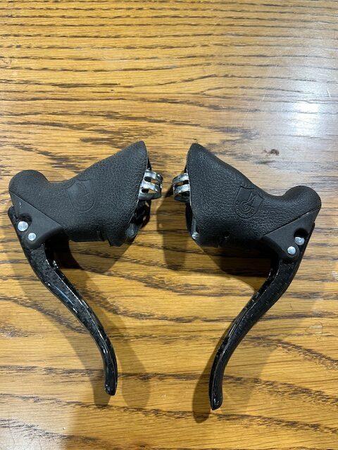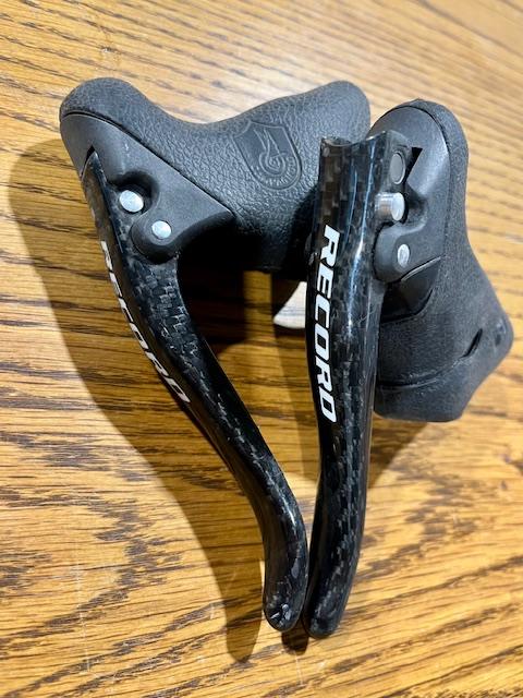 Paire de leviers de freins Campagnolo Record Carbone compatibles avec tous types de cintre et d’étrier, légèreté et puissance de freinage au rendez vous
