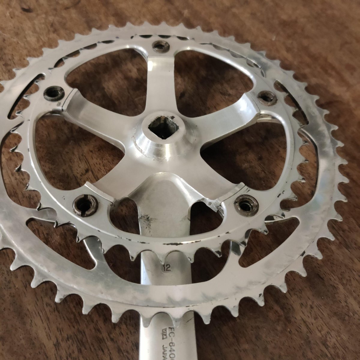 le petit plateau de marque stronglight est très usé, mais nous pouvons vous commander un plateau neuf, n’hésitez pas à nous demander.