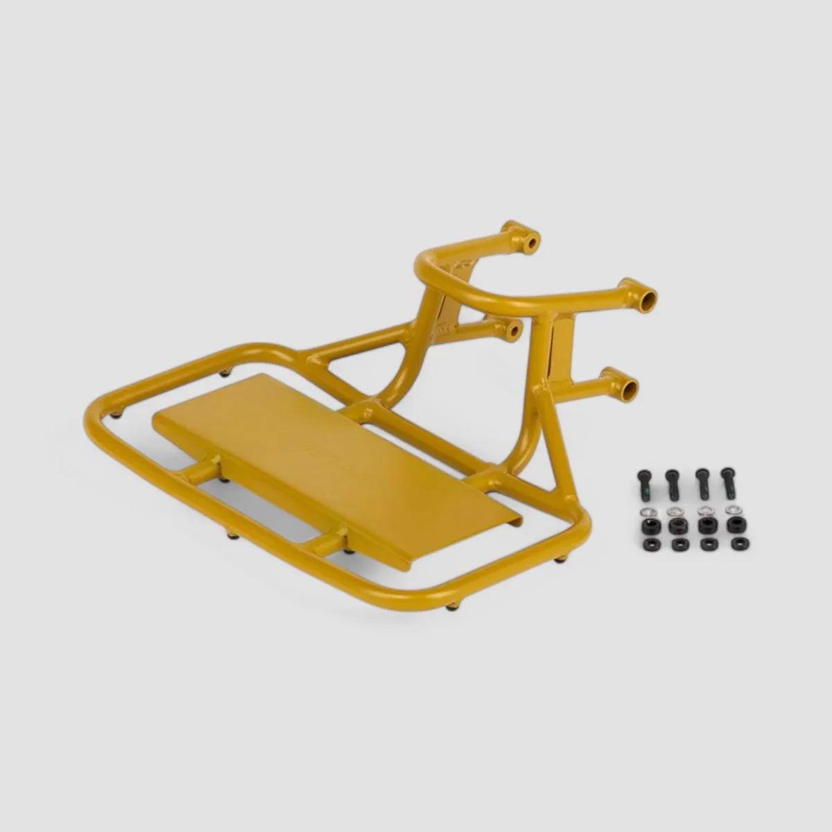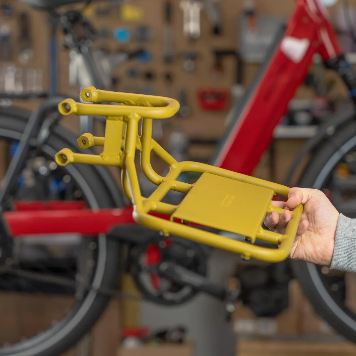 Le porte-bagages avant Riese & Müller offre une grande surface idéale pour transporter des objets volumineux tels qu’un sac de couchage ou une tente. Avec une capacité de charge maximale de 5 kg, il vous permet de voyager facilement avec tout ce dont vous avez besoin.