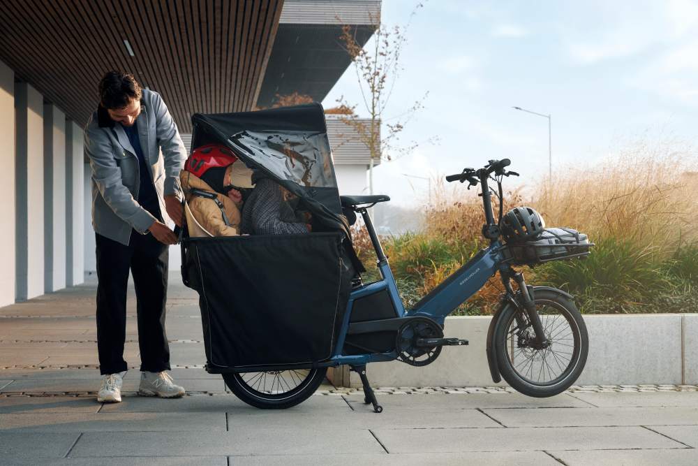 Grâce à sa protection en bas, les jambes de deux passagers sont efficacement abritées pour un confort optimal. Avec également la capote haute qui protège contre le vent et les intempéries, garantissant un trajet agréable par tous les temps. Avec une capacité de 130 litres, cet ensemble assure un transport sécurisé des passagers et des objets du quotidien.