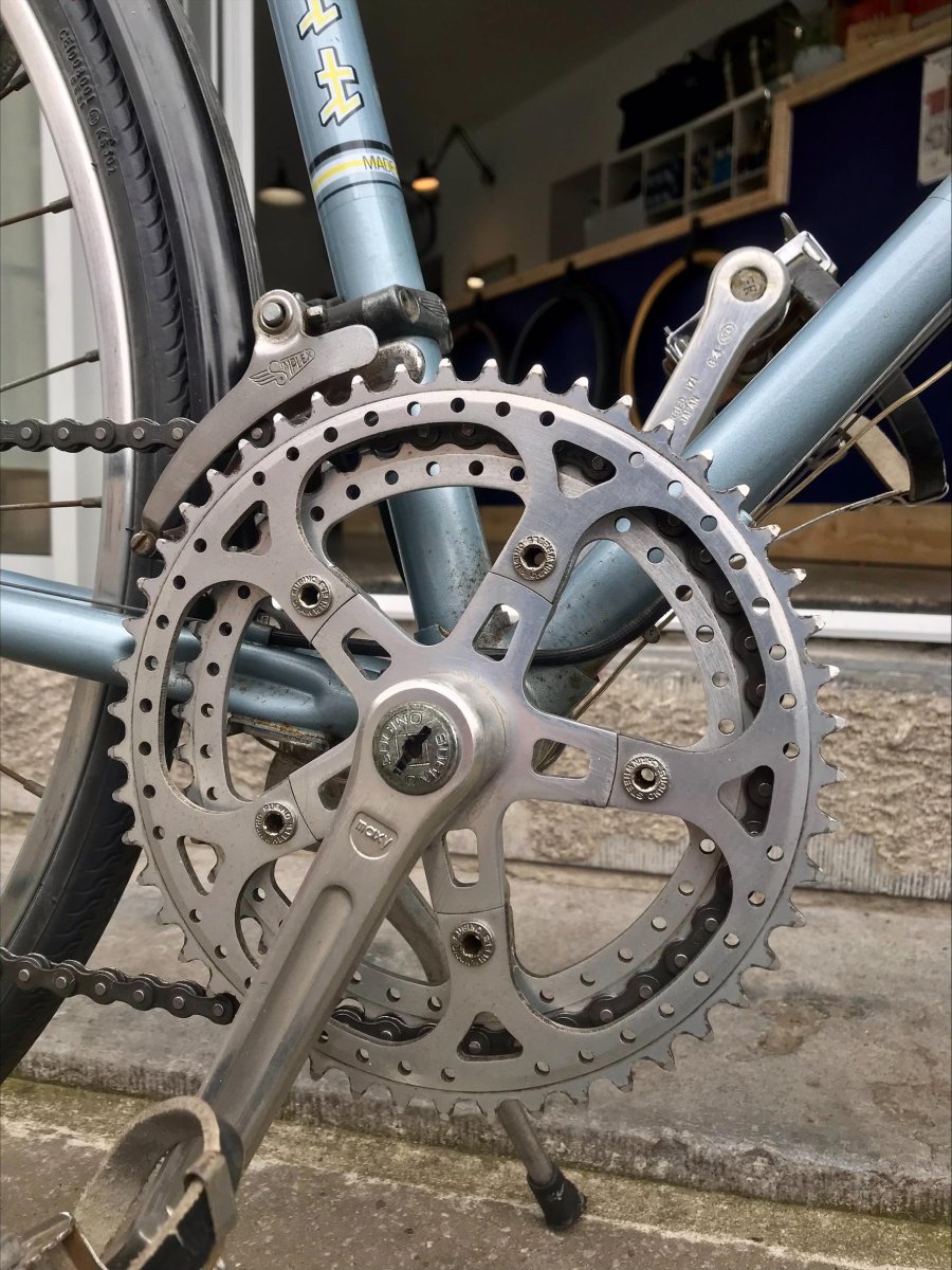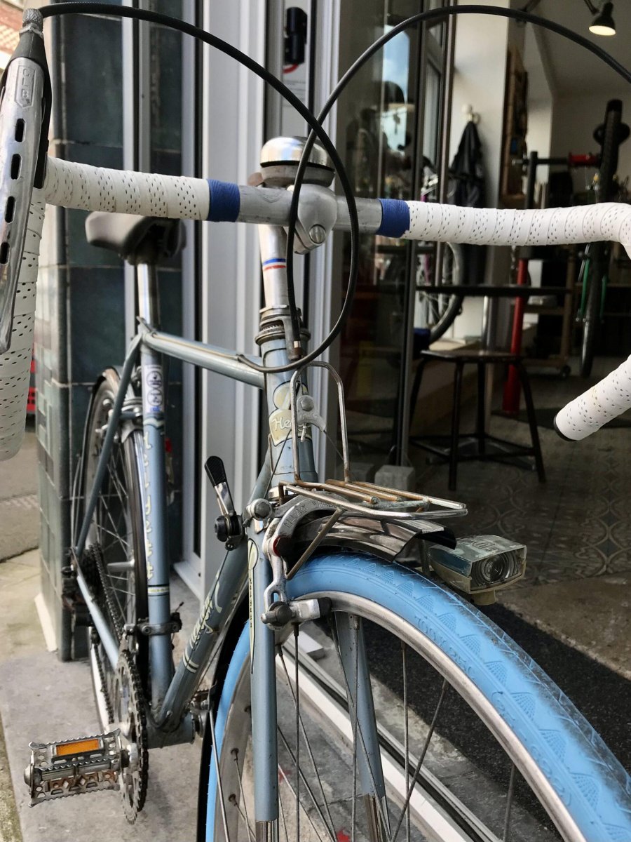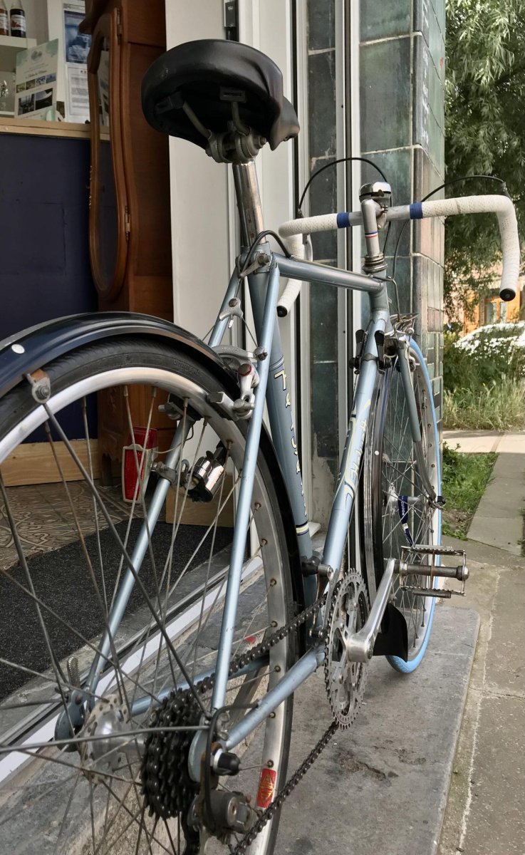 Roues MAVIC 28″ Etriers de frein MAFAC Vitesses 2×5 SIMPLEX Pédalier SUGINO Eclairage dynamo Garde boue BLUEMELS Porte-bagage et saccoche avant
