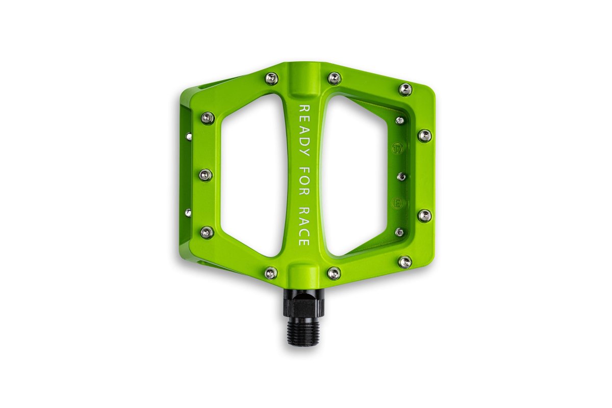 RFR Pedals Flat CMPT Couleur: Rouge, Gris, jaune, vert Ces pédales plates légères en aluminium sont équipées d’un axe en chrome-molybdène. Les picots antidérapants sont interchangeables et offrent une adhérence optimale sur le vélo