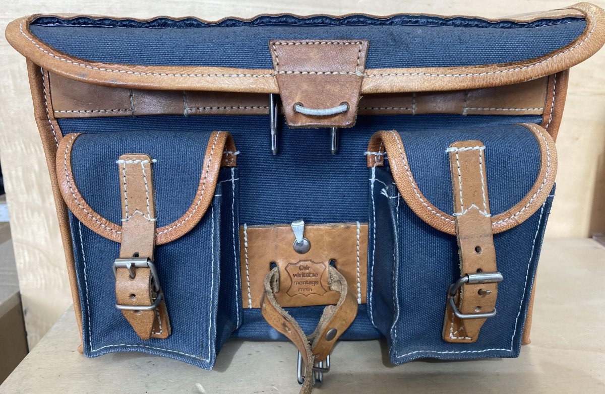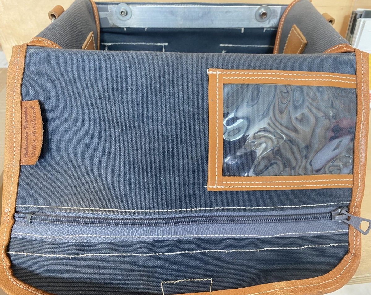 Sacoche Avant Gilles Berthoud GB2586 iconique et très pratique, cuir et coton. en parfait Ă©tat. c’est la sacoche par excellence. Poids : 810g Dimensions : 270 x 220 x 145mm Volume : 10L pour vĂ©lo type randonneuse