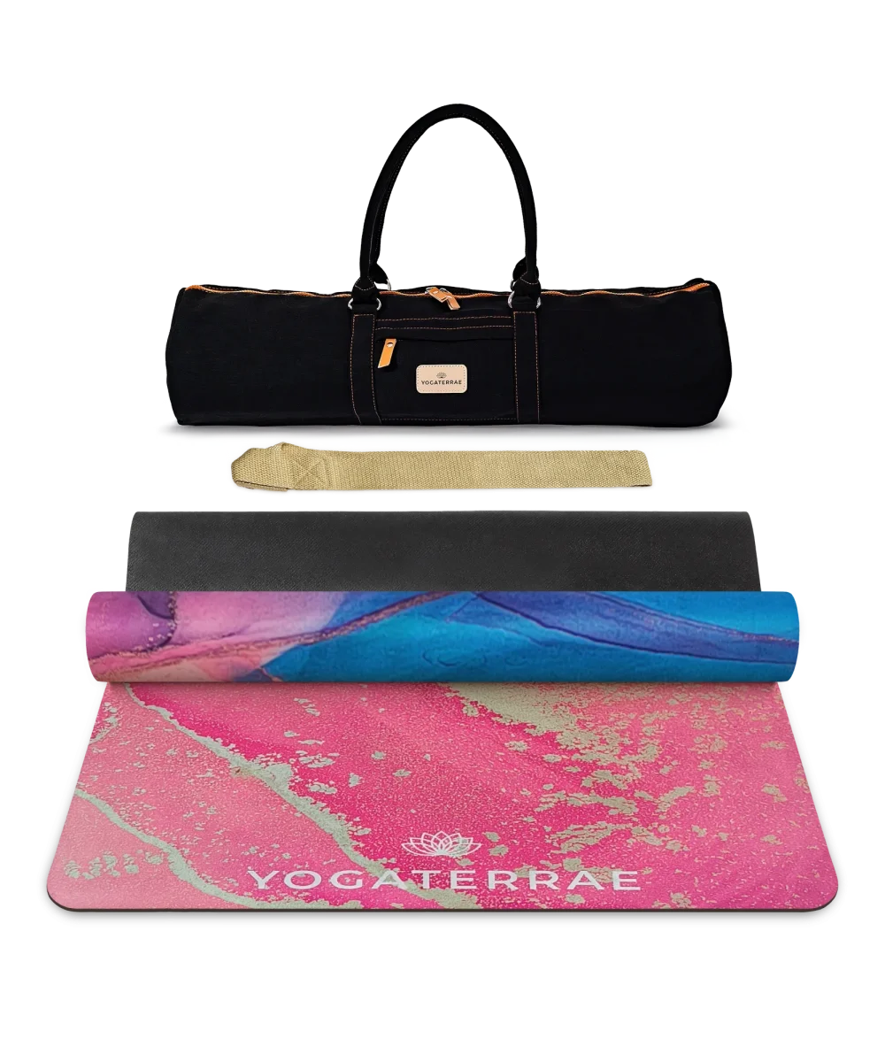 Laissez-vous guider par l’énergie vibrante d’ARAVINDA, tapis de yoga antidérapant en microfibre suédée et caoutchouc naturel. Sa texture douce et son grip naturel favorisent l’ancrage dans chaque posture. Avec son sac assorti, il vous accompagne dans tous vos voyages intérieurs et extérieurs.