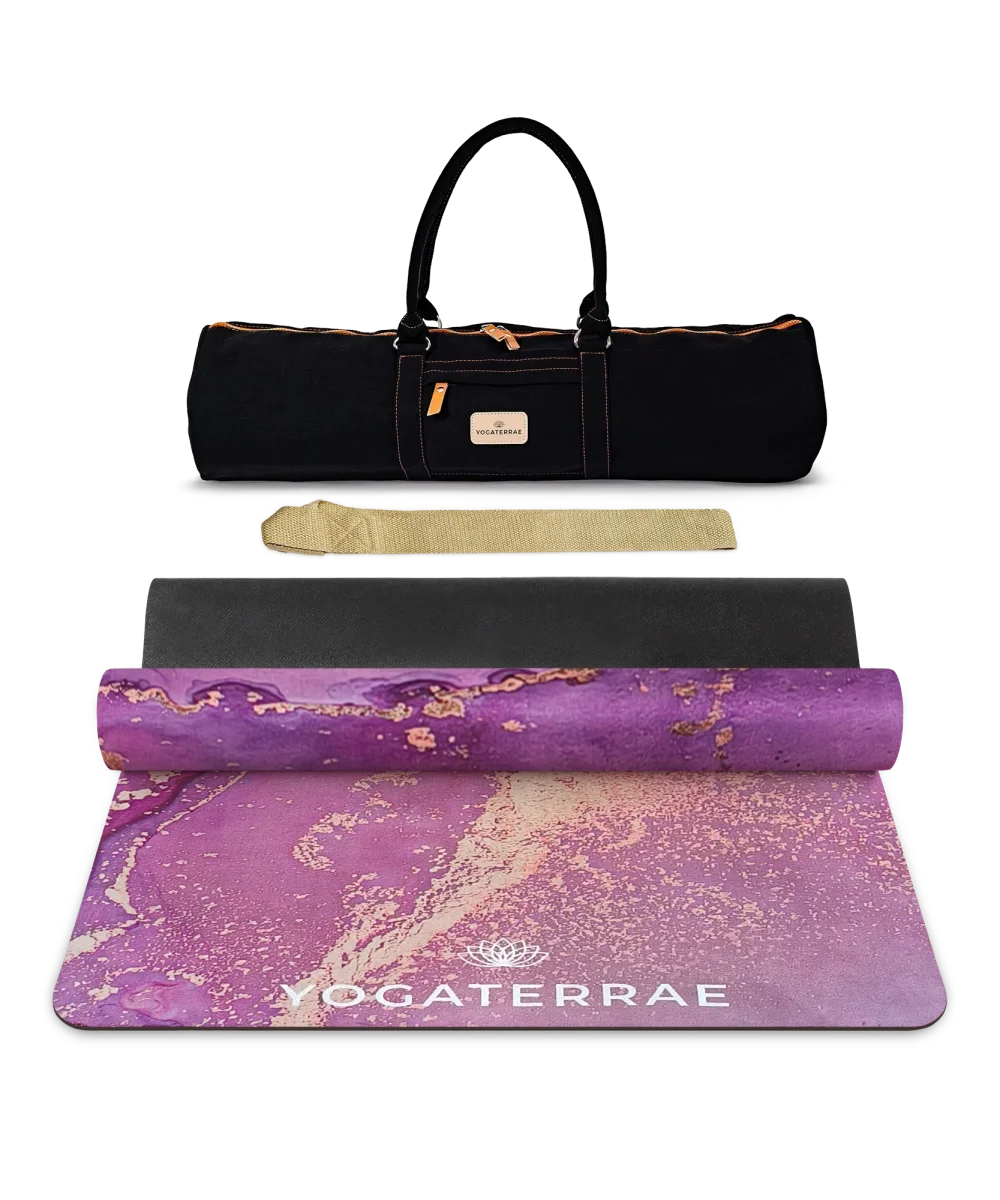 Nomade et lavable, le tapis de yoga Lavanya voyage s’offre un sac de transport aussi élégant que pratique. Sa surface en microfibre suédée capte l’énergie du corps pour une adhérence optimale, tandis que son design rose et cuivre éveille une pratique sensuelle et inspirée.