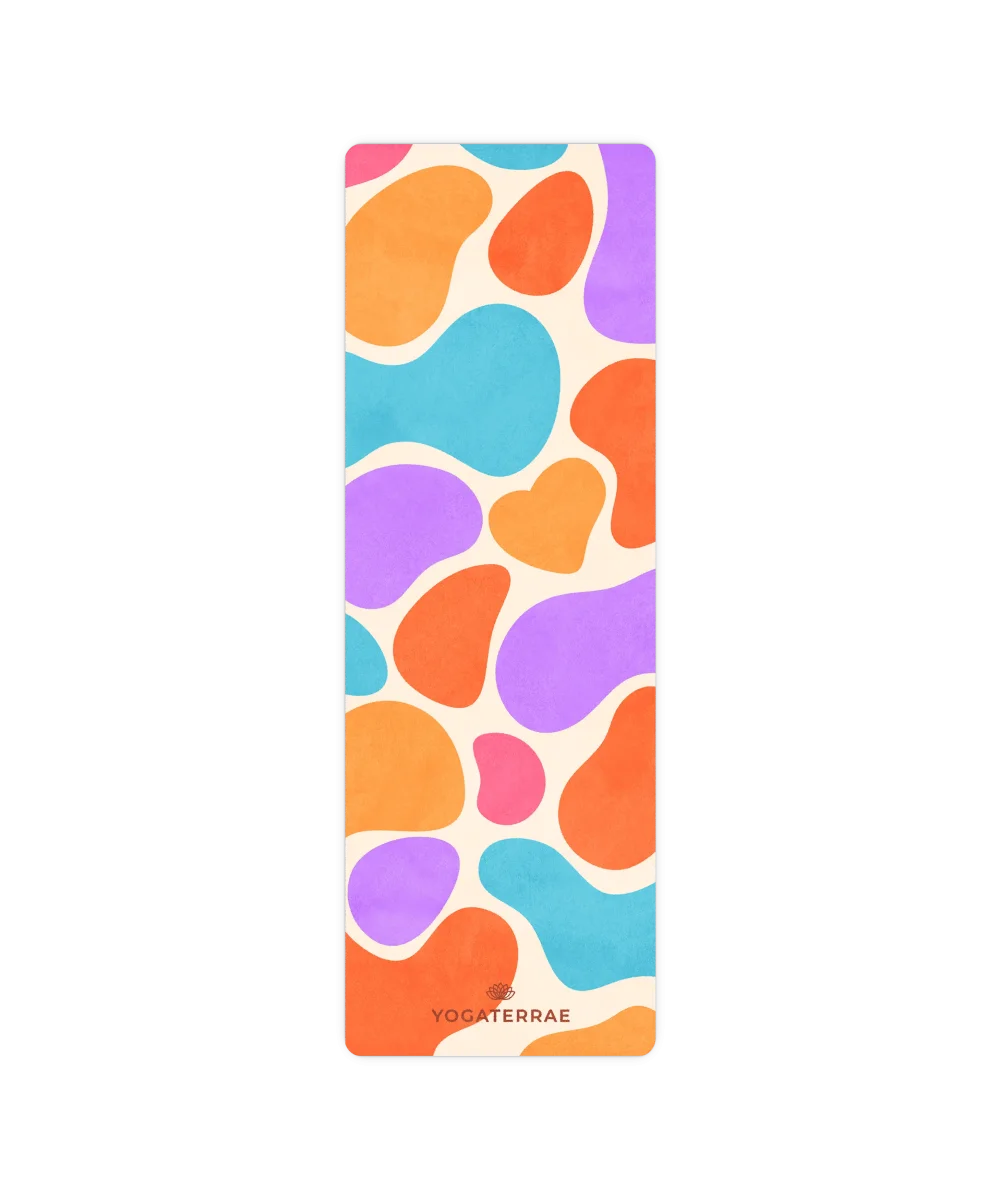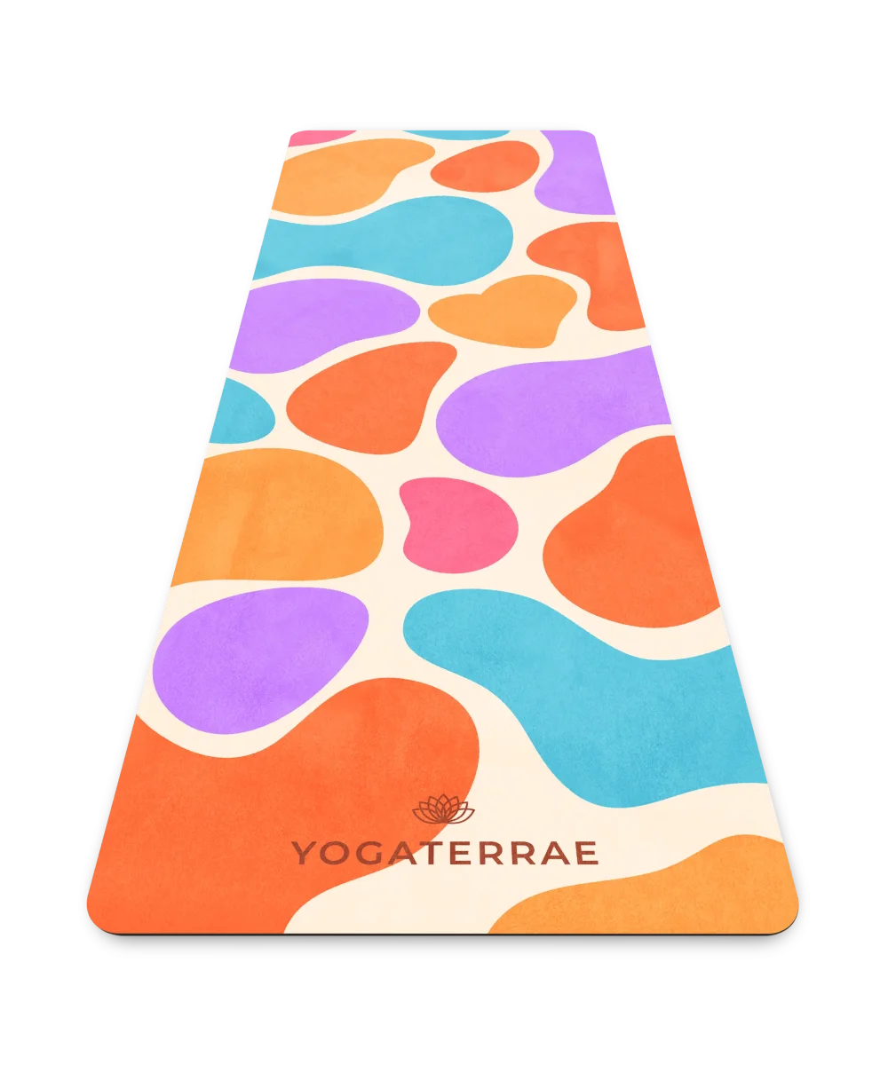 Le tapis de yoga MEXICO VOYAGE, en microfibre suédée douce et base en caoutchouc naturel de 1 mm, se plie et se transporte aisément. Léger et lavable en machine, il devient l’allié idéal de vos pratiques en voyage ou en studio. Ses teintes éclatantes, entre violet audacieux, turquoise intense et orange flamboyant, rappellent l’énergie des marchés mexicains et la chaleur des fêtes solaires. Un tapis pensé comme une vibration sensorielle, entre joie, liberté et intensité.