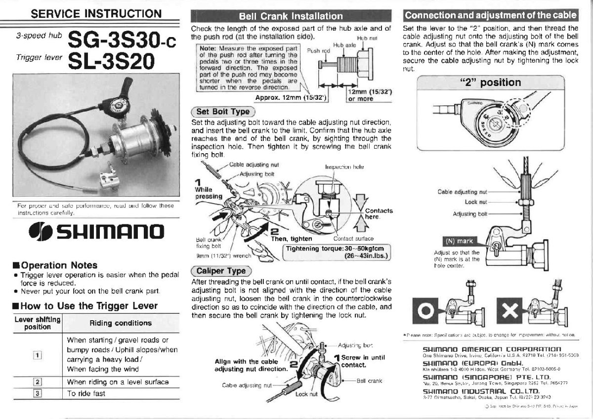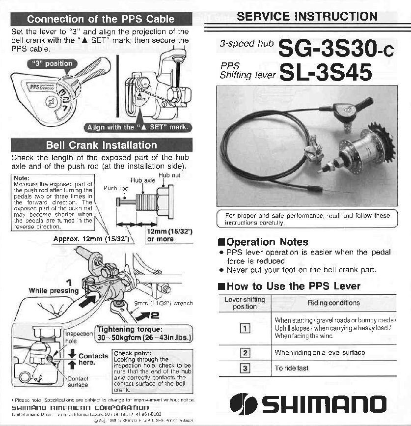 moyeu arrière 3 vitesses SG-3S30 / SL-3S20 très fiable !