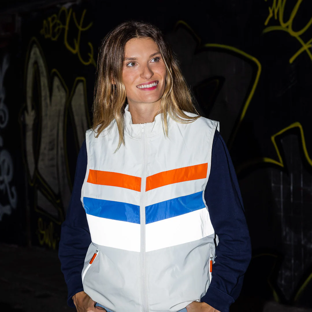 Fabriquées à partir de plastique recyclé et en tissu sans PFAS, nos vestes réfléchissantes ont été développées pour que vous soyez visible de nuit grâce à ses éléments rétroréfléchissants.