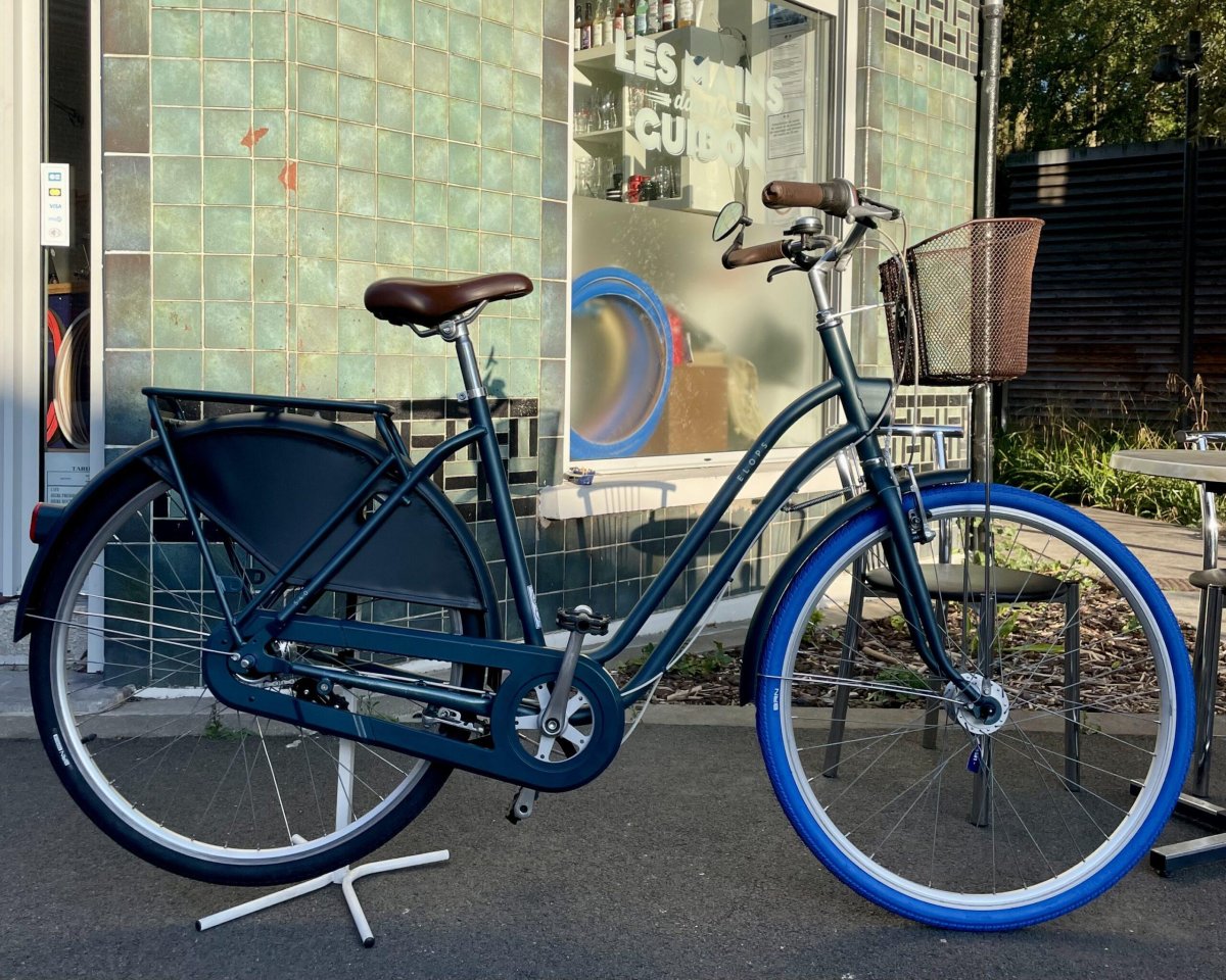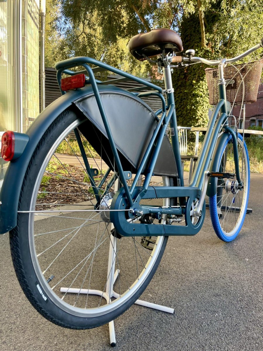 Cadre aluminium Roues de 28″ avant dynamo et arrière en aluminium double paroi Pneus 37-622 7 vitesses SHINAMO nexus Panier AV vissé Porte-bagages AR Eclairage par dynamo AV et AR ok Garde-boue AV et AR Béquille latérale VAE Carter de protection chaîne Sonnette Protège jupe Réroviseurs
