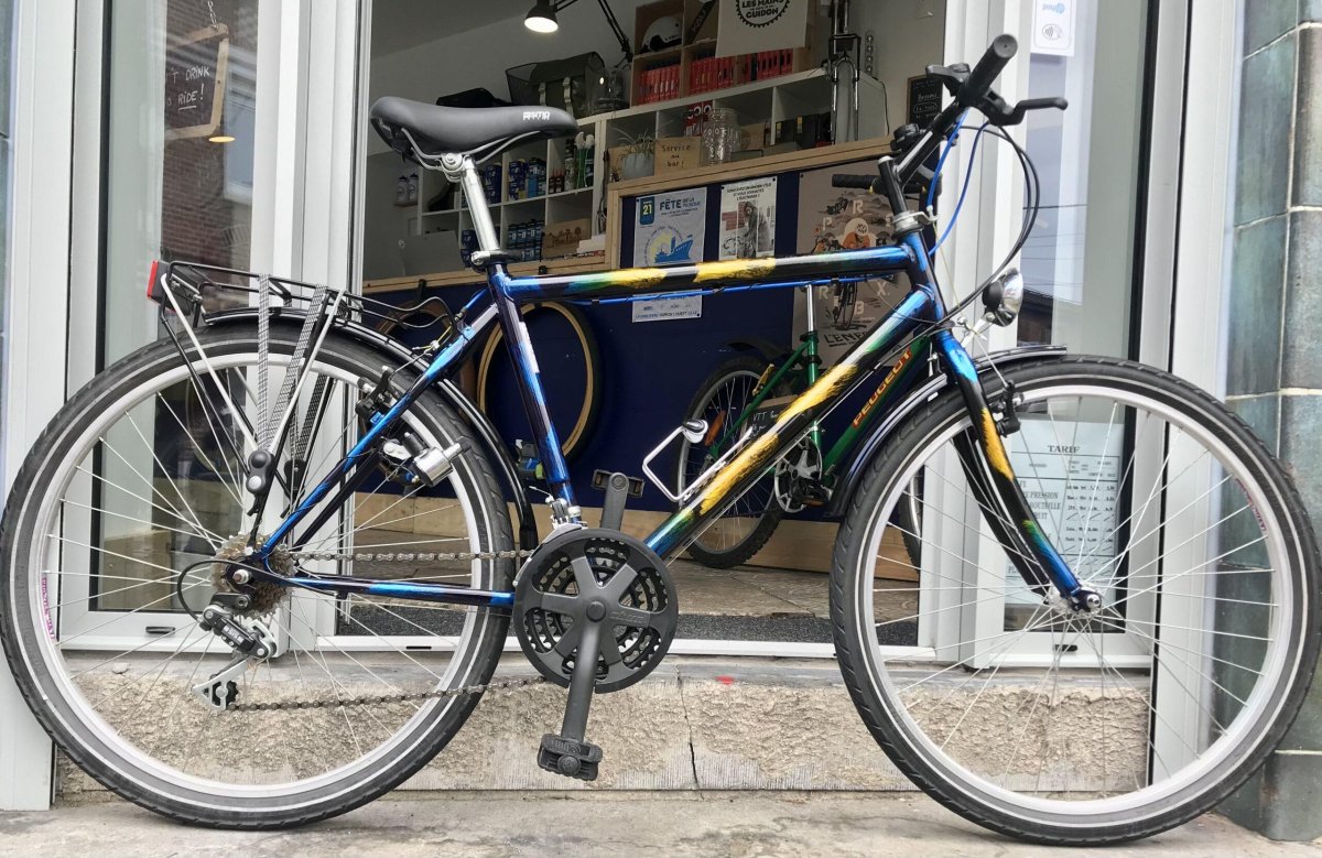 Roue 26″ Groupe SHIMANO SIS 3×7 vitesses Eclairage dynamo Garde boue Porte bagage arrière + sangles Porte bidon MASSLOAD Selle SMP PyrĂ©nĂ©es