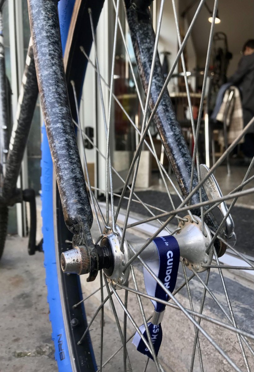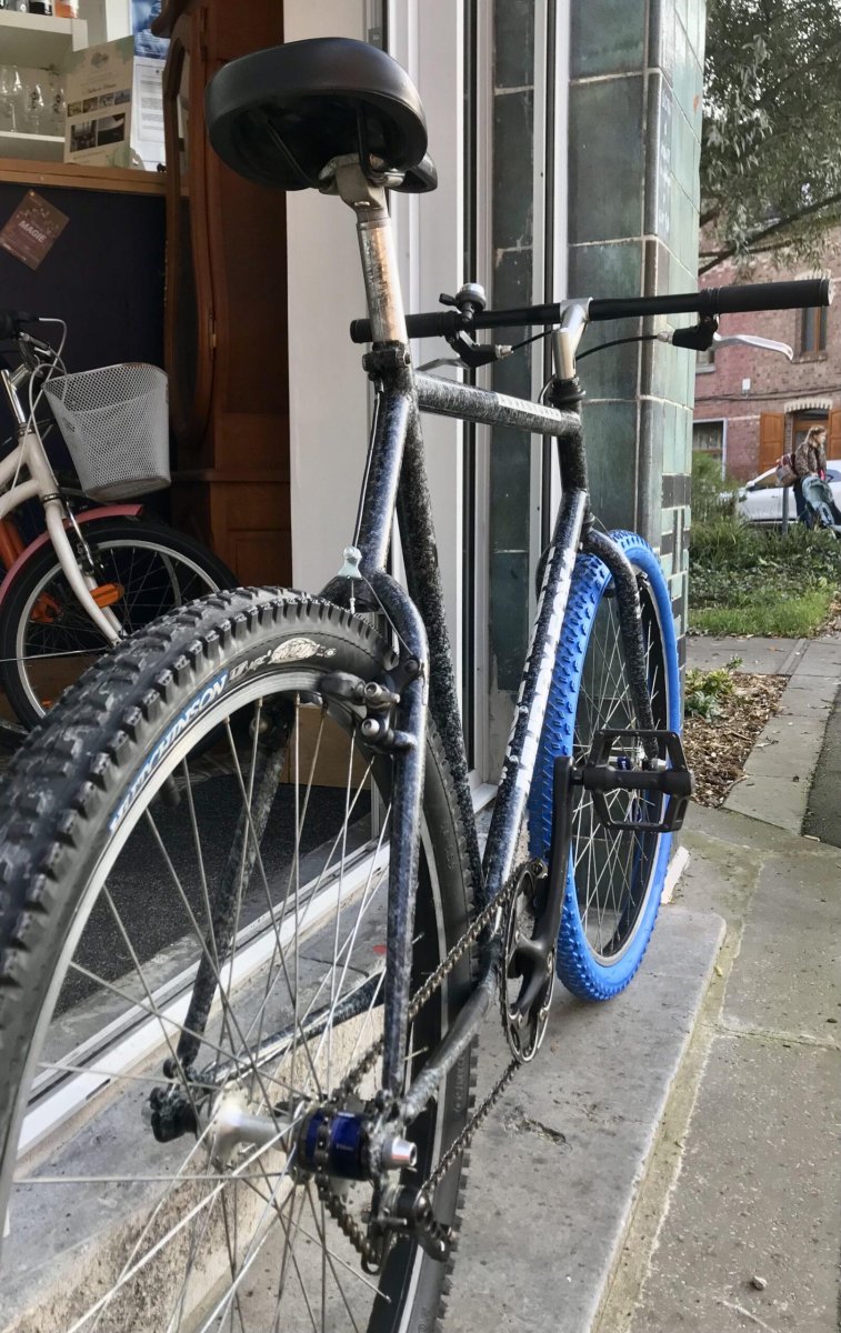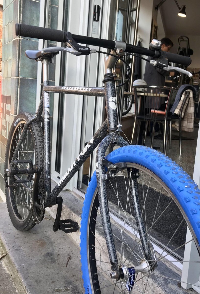 Cadre CRO-MO 4130 (costaud et lĂ©ger) Roue 26″ Moyeux SHIMANO Exage 7 vitesses converti en single Freins cantilever Eclairage Ă pile AV et AR