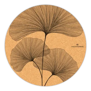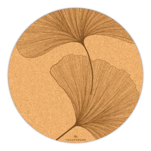 TAPIS DE YOGA ROND ANTIDÉRAPANT EN LIÈGE GINKGO BILOBA MARRON