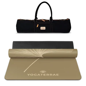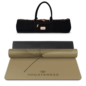 TAPIS DE YOGA GINKGOS BRONZE OLIVE LIGHT EN PU-CAOUTCHOUC NATUREL AVEC SAC