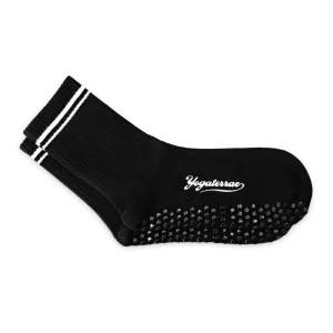 CHAUSSETTES FEMME ANTIDÉRAPANTES RAYURES CONTRASTÉES, NOIR