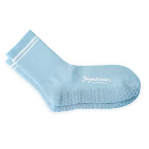 CHAUSSETTES FEMME ANTIDÉRAPANTES RAYURES CONTRASTÉES, BLEU CIEL
