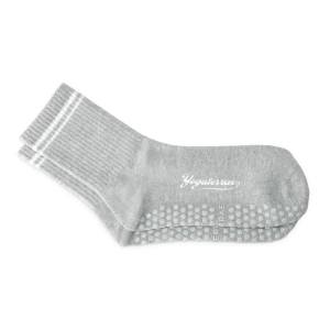 CHAUSSETTES FEMME ANTIDÉRAPANTES RAYURES CONTRASTÉES, GRIS CHINÉ