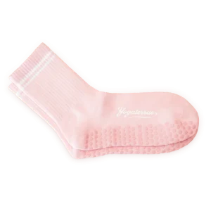 CHAUSSETTES FEMME ANTIDÉRAPANTES RAYURES CONTRASTÉES, ROSE